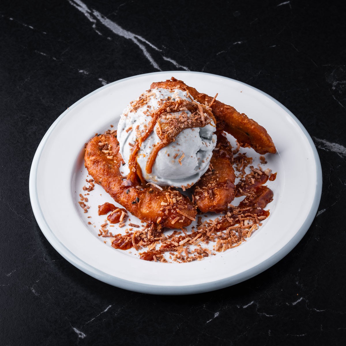 Sweet meets street. Thai fried banana with coconut ice cream the perfect last bite.